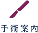 手術に関しましては、事前に患者様ご本人又は同伴のご家族に対して院長もしくは担当医師よりご説明させていただきます。ご不明な点やご質問などございましたらお気軽にご相談ください。手術を安全に患者様が安心して手術を受けていただけるようにスタッフ一同努めてまいります。